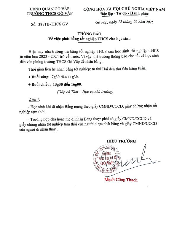 Danh sách học sinh tốt nghiệp THCS